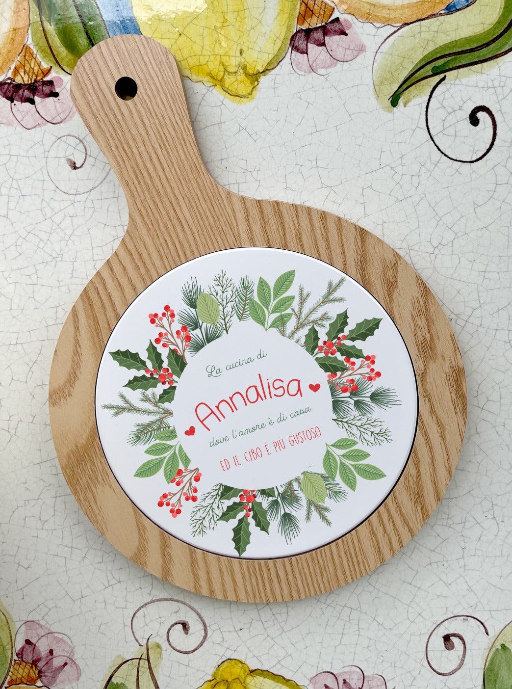 Pallina di Natale in legno personalizzata Doppia faccia - idea regalo Natale