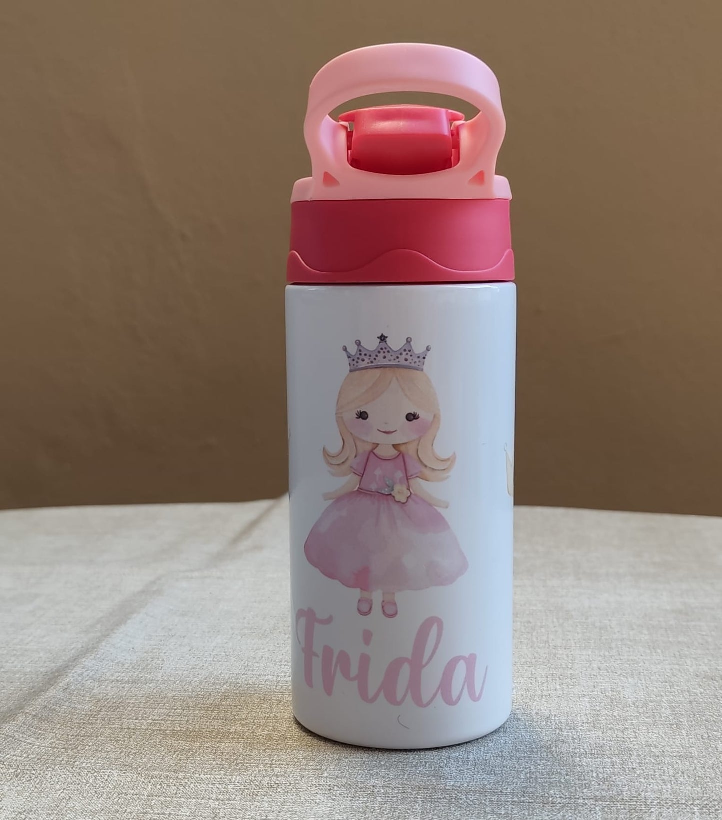 La nostra borraccia termica in acciaio inox personalizzata con nome e simpatici disegni mantiene la temperatura delle bevande fredde e calde.