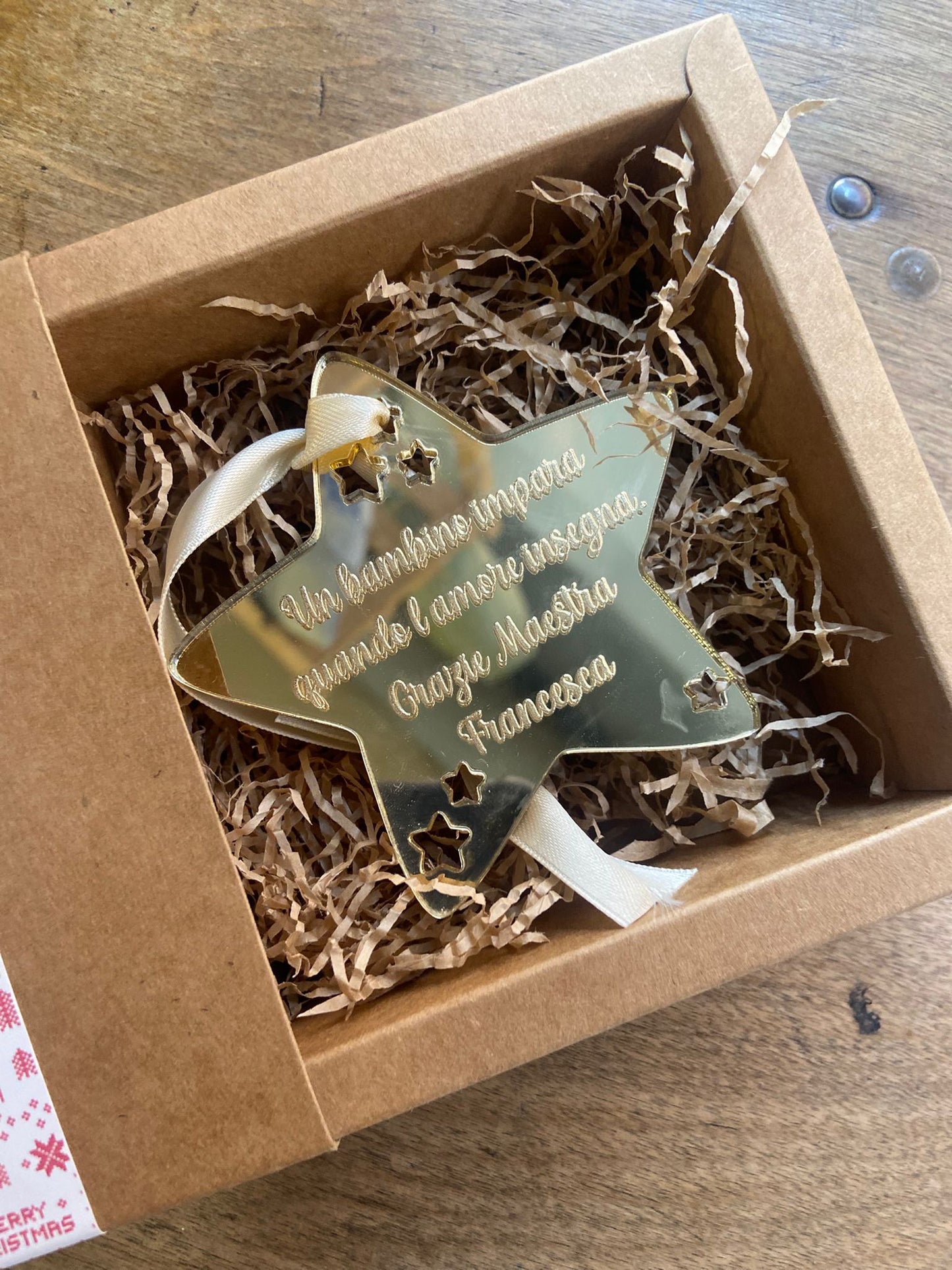 La scatola contiene una stellina decorativa in plexiglass.